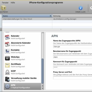 Der Rest dieses Beitrags ist für technisch völlig uninteressierte Leser möglicherweise unbekömmlich. Was ich jetzt schreibe, ist Bestandteil eines lange währenden Kriegs, der älter ist als ich selbst (nämlich dem zwischen Apple-Fans und dem Rest der Welt). Während mein Android-Gerät die Karte bedenkenlos schluckte, automatisch die Verbindung (APN-Einstellungen) konfigurierte und einsatzbereit war, blieb ihr Apple-Gerät nicht nur offline, sondern in den Einstellungen fehlten sonderbarerweise die Einstellungsmöglichkeiten für APNs. Meine Vermutung war jedoch, dass eine APN-Konfiguration das Problem beheben würde. Ein APN ist sozusagen der Server, über den sich das Gerät mit dem Internet verbindet. Deswegen muss es dessen Adresse kennen und die ist von Provider zu Provider verschieden. Normalerweise bieten auch iPhones die Möglichkeit, APNs zu konfigurieren. Apple als Freund geschlossener Systeme, in die der Anwender zu seinem Besten eingesperrt wird, entfernt diese Einstellungsmöglichkeit teilweise bei Geräten, die als Teil eines Vertrags verkauft werden, denn bei festem Anbieter ist eine Änderung nicht nötig und man möchte den Nutzer wohl nicht mit Unnötigem belasten. Dieses Gerät war jedoch ohne Vertrag gekauft worden. Warum die Einstellungsoption versteckt war, war für mich nicht nachvollziehbar. Über einen Umweg lässt sich der APN aber doch festlegen. Das wusste ich noch aus der Zeit, als ich selbst mal ein Apple-Gerät, einen ipod Touch 2G, benutzt und dabei in meiner Neugier so ziemlich alles Mögliche ausprobiert hatte. Für Geräte, die in Firmen genutzt werden, ist nämlich die Option gedacht, bestimmte Einstellungen in eine Datei verpackt auf viele Firmengeräte gleichzeitig aufzuspielen. Auf diese Weise kommen die Geräte zum Beispiel direkt ins Firmennetz, ohne dass die Mitarbeiter dafür erst die Passwörter einstellen müssen. Auf diesem Weg sind aber auch manche Einstellmöglichkeiten vorhanden, auf die der Nutzer direkt gar keinen Zugriff hat. Ich hatte das damals benutzt, um auf meinem iPod einen besonders langen Sperrcode verwenden zu können, denn damals waren für Privatanwender nur vier Ziffern vorgesehen (was für manche Firmenumgebungen zu wenig gewesen wäre). In den Konfigurationsprofilen können auch APNs konfiguriert werden. Tatsächlich gelang es mir (und auf anderem Wege gelang es mir nicht), von meinem Laptop aus ein Firmenkonfigurationsprofil zu erstellen, das die APN-Daten des Anbieters enthielt, es auf meinen Webserver hochzuladen, vom iPhone aus abzurufen und zu installieren. Voilá – Danach funktionierte das Internet. Inlusive dem Download des Appple-Firmen-Konfigurationstools (iPCU) von einer Archivwebseite (denn Apple bietet das Tool für Windows nicht mehr an) dauerte alles eineinhalb Stunden. Das Herumspielen mit dem iPod in meiner Kindheit hat sich also doch noch ausgezahlt 😉