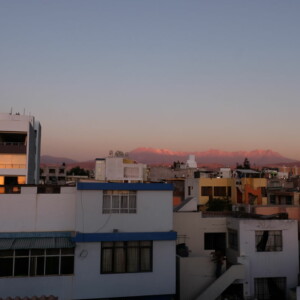 Arequipa liegt im Süden Perus. Dorthin kommt man zum Beispiel mit dem Bus. Weil Peru recht groß ist, dauerte die Fahrt 16 Stunden. Ich fuhr Dienstag Abend um 21:00 vom Busterminal ab. Der Ablauf erinnert fast schon ans Fliegen, denn das Gepäck wird am Schalter abgegeben, Reisepässe werden überprüft und Passagiere werden vor dem Einsteigen mit einem Metalldetektor abgeklopft. Außerdem gibt es im Bus Entertainment-Systeme und es wird Essen serviert. Allerdings reicht es, 20 Minuten vor Abfahrt einzutreffen. Die Fahrt ging durch das nächtliche Lima und dann an der Küste entlang, von der ich jetzt einen Gutteil abgefahren habe. Unterwegs begegenen einem haufenweise LKWs, aber es ist bis auf wenige winzige Fischerdörfer kaum Zivilisation zu sehen. Man fährt quasi durch die Wüste. Links der Berg, dann Einöde, dann die Straße, rechts der steinige Strand, dann das Meer. Gegen Ende der Fahrt biegt der Bus dann nach links ab, wir verlassen die Küste, überqueren einen Pass (irgendwann mit nur noch 35km/h auch auf der Geraden), es geht wieder bergab, auf einmal gibt es mehr grüne Flecken und dann fahren wir auch schon durch Arequipa. Mit über einer Stunde Verspätung komme ich am hiesigen Busbahnhof an. Dieser hier wird auch von anderen Buslinien benutzt, es gibt Geschäfte darin, am Ehesten ist er mit einem etwas größeren Bahnhof zu vergleichen. Das Wetter ist wärmer und sonniger als in LIMA, wo die Sonne fast immer durch Dunst verdeckt wird.