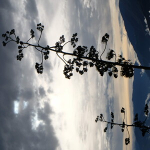 Ich denke, dass auf dem ersten Bild Fruchtstände von Agaven zu sehen sind. Nicht blühende/fruchtende Exemplare kann man auf dem dritten und vierten Bild am Grat erkennen. Aber was ist das für ein Schmetterling?